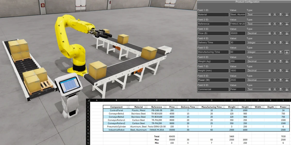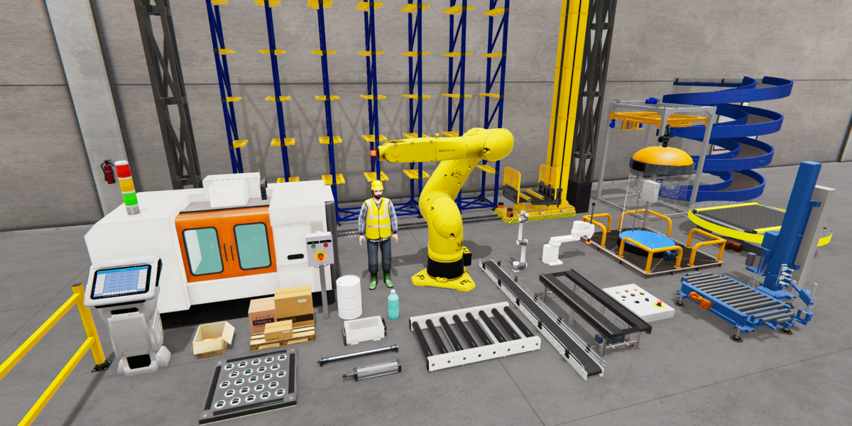 Le logiciel permet de simuler des lignes de production automatisées, d’intégrer des automates programmables (PLC), des robots industriels et collaboratifs, ainsi que différents protocoles de communication industriels.